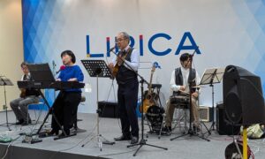 新前橋商工会の福田俊昭会長と、会の書記を務め、JR新前橋駅前でキンパの人気店「BENTO261」を営む金カヤさんによる音楽ユニット「書記と会長」が3月20日、前橋市国領町の商業施設「前橋リリカ」で演奏を披露しました。